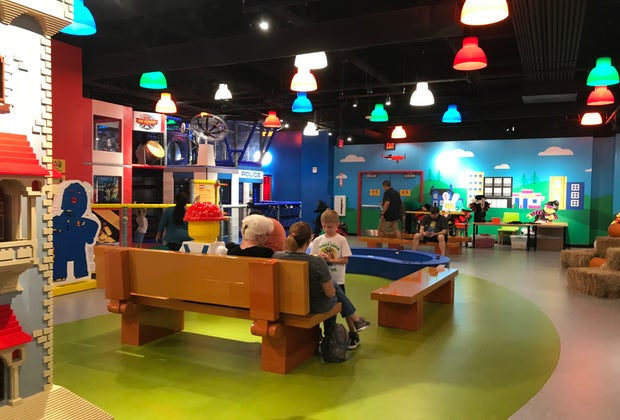 The next area that we entered is the main area for the entire center with an open floor plan featuring a variety of attractions that kids can easily hop back and forth between. Situated in one corner is the LEGO City Play Zone — a giant climbing area with tunnels and slides built to look like a police station and fire academy. Our son could have stayed on this jungle gym for over an hour if we had let him. There is plenty of seating nearby for adults to relax, but during our trip, there was a LEGO Masterbuilder putting together a massive display right next to the play area, so we mostly watched her and picked her brain about what it’s like to work as a real Masterbuilder. She was happy to talk to us, and it kept us entertained while our son played. If you plan for your kids to spend time in the Play Zone, be advised that socks are required.