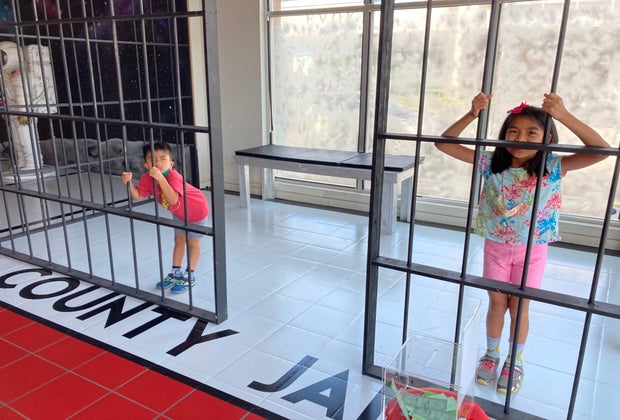 Next, we visited NASA to pose with an astronaut during the planting of the flag on the moon. The kids did a short stint in the jailhouse before making their way around the rest of the room. We visited the high-end shopping district in the Galleria, then stopped by a recording studio; an homage to famous musicians with Houston roots.