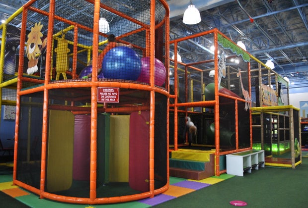 Toddlers can also get in on the climbing and sliding fun on their very own play structure located in a designated area reserved for kids ages two and under. This enclosed area also features several ride-on toys, balls, and foam blocks for little ones to enjoy without worrying about bigger kids trampling tiny fingers and toes.