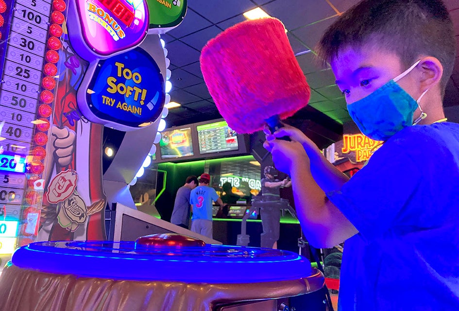 There’s a little bit of everything in there, from Pac-Man and racing games to foosball and arcade basketball. There aren’t really any games appropriate for preschoolers though. My youngest is going to be a first-grader and I felt like he only just hit the cut-off for being able to participate.
