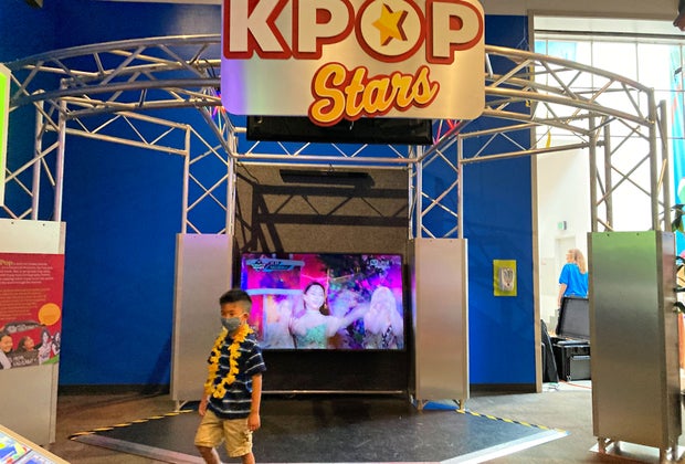 The KPop Stars Studio offers a fun peek into the K-Pop world. Kids can show off their own moves on the make-believe stage while watching K-Pop bands, like BTS, perform on the big screen.