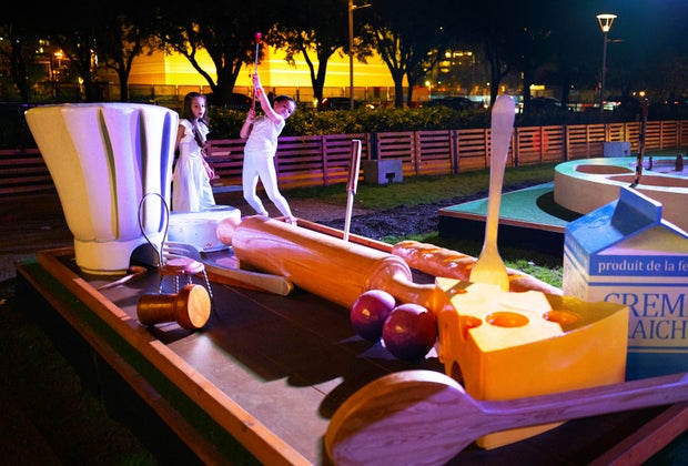 See scenes from popular Pixar flicks, like Up, during your visit to Pixar Putt. Photography by Daniel Ortiz, The PR Boutique