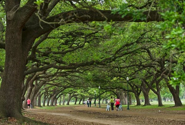 Enjoy the beautiful architecture of Rice University, and check out this 3-mile running trail that circles around the campus. Although next to roads, it provides a lovely circuit and has a flat path. The Rice University campus also has a range of artwork you can view.