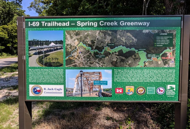 Spring Creek Greenway offers some longer stroller hikes near Houston. Spring Creek Greenway trail map photo courtesy of tekbiker.net