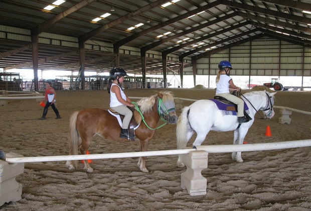 Magic Moments Stables offers lessons for everyone from beginners to advanced riders that encompass all aspects of horsemanship, from proper tacking techniques to grooming. All beginner riders will start with hour-long lessons until their instructor approves their knowledge of basic horse-keeping and safety, at which time riders can switch to 45-minute or 30-minute lessons. A helmet is provided for the first few lessons, but Magic Moments suggests students invest in their own riding helmet after that. They also offer Mommy and Me lessons where parents of kids ages 3 to 5 can learn to ride with a parent.