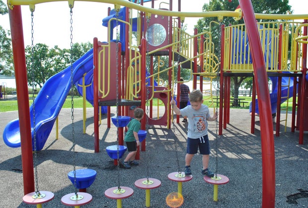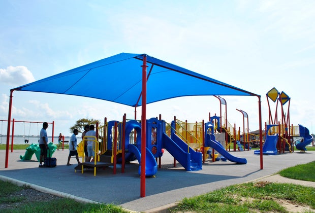 This shaded playground set on the south side of Clear Lake Park is perfect for preschoolers.