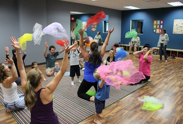 Parents and their tiny tots bond over music. Photo courtesy of Music Together at Soulshine Arts.