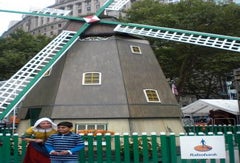 We visited New Amsterdam Village today around lunchtime and it was packed with business people and tourists, but still lots of fun. Billed as a free event that shares Dutch culture, we enjoyed a live dutch brass band and seeing the wooden shoe carving demo as well as people dressed in traditional dutch costumes. Vendors sell customary Dutch foods such as delicious little pancakes covered in powdered sugar ($5 for 6) and the not very popular herring sandwiches ($8). Children can't help but be tempted by the "floral workshop" which lets them make a beautiful little decoration out of candied edible flowers. I just wish that they more clearly marked that the "workshop" costs $8! Daily through September 13, 11am-7pm at The Battery in front of the National Museum of the American Indian (look for the giant windmill when you get off the train.)