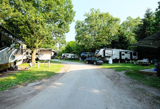 With sites for both RV and tent camping (there are more RV spots here), this campground on the banks of Sylvan Lake Beach offers a host of fun amenities, including swimming, boating, and a playground. Sports-loving families will love that there are places to play volleyball, basketball, baseball, and more. There are showers and bathrooms—and even on-site laundry.