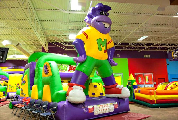 Bouncing around on giant inflatables is the focus at Monkey Joe's. Photo courtesy of Monkey Joe's