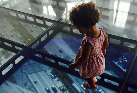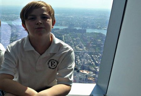 My son at the top of the town at One World Observatory.