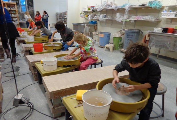 Kids can learn to throw in pottery classes located in Somerville. Clay classes for kids. Photo courtesy of Mud Flat Studio