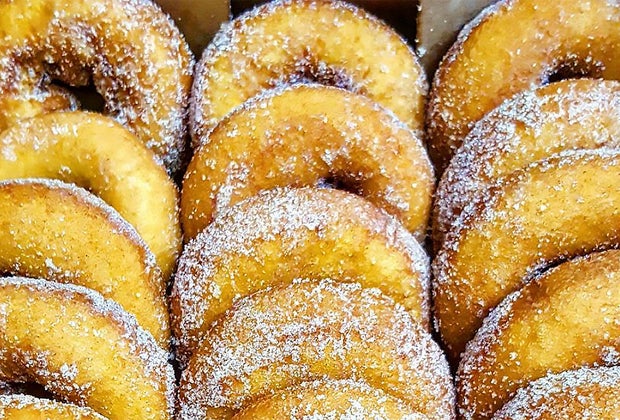 Indulge in homemade apple cider doughnuts at Ochs Orchard in Warwick.