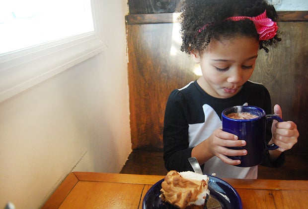 Daly Pie in Prospect Heights offers a selection of pies, including chocolate s’more, that pairs perfectly with your kid’s hot chocolate. Photo by Sara F./Mommy Poppins.