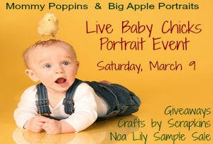 While Portraitbug has closed, most of the staff has moved to Big Apple Portraits, which offers the same great quality and value just a few blocks away. So I'm thrilled to partner with Big Apple Portraits this year to offer Live Baby Chicks Portrait Sessions at our upcoming Mommy Poppins special event.