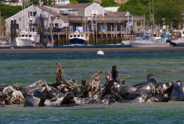 Seals bask in the sun off of Chatham harbor. Photo courtesy of Dave Johnston via Flickr