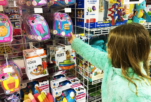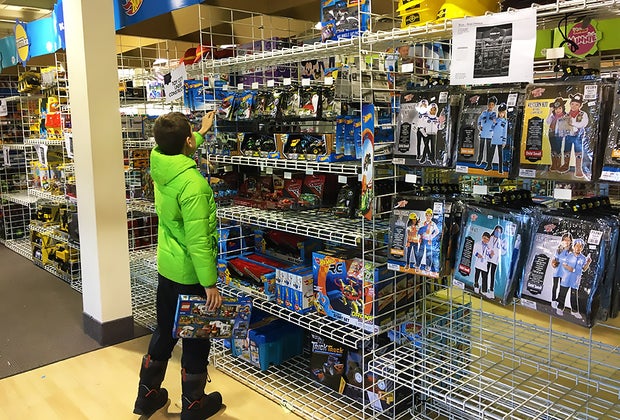 The store is selling just about every category of toy, including arts and crafts, STEM, dress-up, outdoor games, electronics, and a section of "as seen on TV" items. Harried parents can find top brands, including Barbie, Fisher-Price, Little Tikes, Imaginext, Tonka, Melissa & Doug, and Little People, as well as some of kids' favorite characters, from Star Wars to Paw Patrol.
