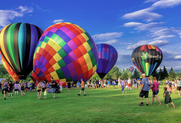 Glimpse (and maybe even ride) in a hot air balloon in July. Photo courtesy of Stowe Balloon Festival