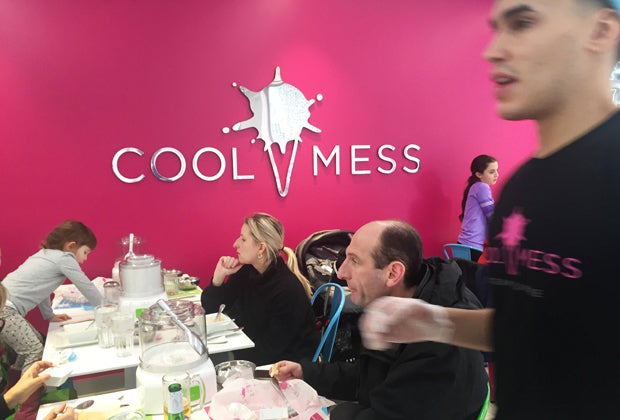My 10-year-old son and I checked out CoolMess, excited by the idea of a bona fide ice cream parlor not far from home. Knowing it offered customized ice cream creations, we were expecting a server to paddle together ice cream and mix-ins on a slab counterside. How pleasantly surprised we were to discover we were wrong. At CoolMess, the customer does all the work, if you can call making ice cream work.