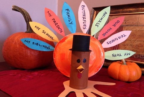 My kids have come down from the excitement (and candy overload) of Halloween and are starting to settle into the season of giving thanks. Actually, if I'm being honest, they are looking PAST the season giving thanks, already asking about letters to Santa. I happen to like Thanksgiving. There's no frenzy over gifts or costumes, just lots of good food and family gatherings...and football. Plus it's a perfect excuse to reinforce lessons in being grateful and giving back. So I try to find ways to help my kids appreciate the season and slow down a bit before we head into the holiday mayhem of Christmas. Crafts are usually a hit with my kids, so I like to start there.