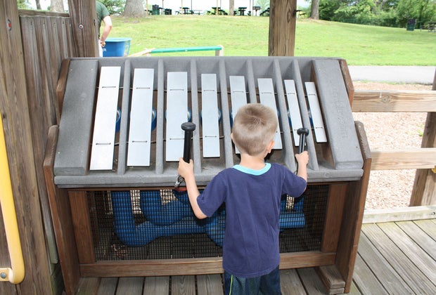 You can even make music on two giant xylophones! These have tethered rubber mallets for anyone to use, but don’t worry—even the most intense drummer isn’t able to produce anything louder than a muted, pleasant bong.