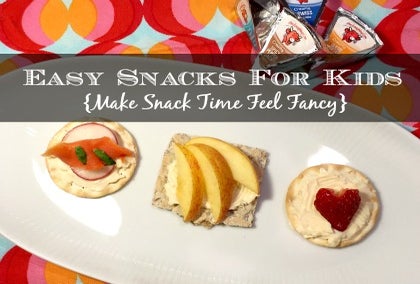 These recipes were inspired by an event I attended with The Laughing Cow, where I learned how to make these stop-motion food videos (it’s super easy using the Vine app) and got the idea for a fancy cheese plate for kids. I made all of the above snacks with The Laughing Cow spreadable cheeses, but you could use cream cheese or another type of cheese if you prefer.