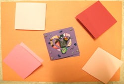 4. A multi-colored heart is glued onto each card (we used glitter glue for the undeniable fun factor). No two are exactly the same!