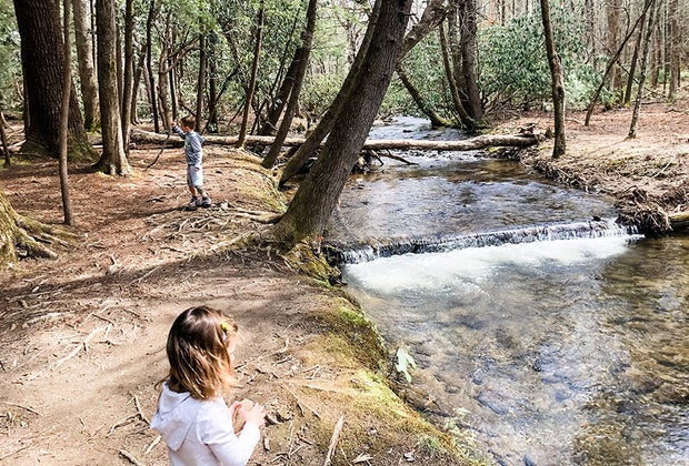 Hike leisurely up to Grotto Falls where you can walk behind the cascading waterfall.