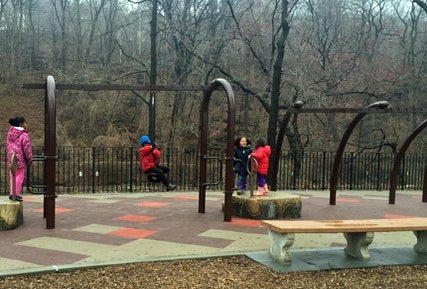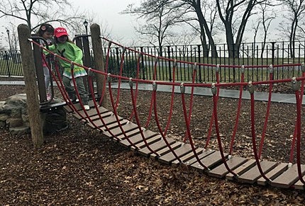 One of the things I love most about living in upper Manhattan is the abundance of green spaces. But while we've got amphitheaters and ball fields galore, we've had a lack of renovated, state-of-the-art destination playgrounds. However, that's starting to change. I noticed a handful of local parks on the city's list for revitalization, but those projects are still in the works and I have three energetic kids to entertain, pronto. That's why I was thrilled when friends raved to me about the overhauled Nature Discovery Playground in Fort Washington Park. My kids and I checked it out, and it did not disappoint! From a cool tree house to an exciting zip line, there are lots of exceptional attractions for kids, along with the usual fun play stuff.