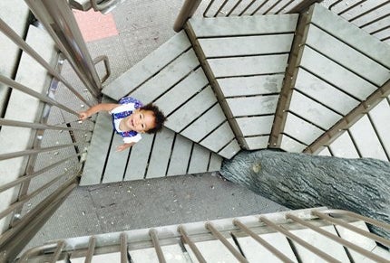 Looking down at the spiral staircase that leads to the top of the tree house!