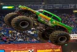 Big cars go boom; the crowd goes wild at Angel Stadium.