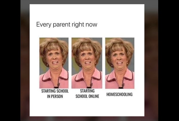 Whether your kids are going full online learning, hybrid, podding up, or 100% in-person, the return to school seems to be incredibly anxiety-provoking for everyone: our kids, the teachers, and parents. I have a kid headed into the school system for the first time as a kindergartner, so I feel this deeply. The only silver lining I see—OK, maybe there are a couple more if I look really close—are the incredibly funny memes this pandemic is producing. I can't be the only one distracting myself from doomsday scrolling with those coronavirus meme threads, right? 'Cause what else can we do but laugh?