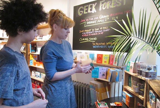 Founded late last year as a pop-up, Geek Forest is celebrating its move to a new, permanent space in Williamsburg with a grand-opening on Saturday, April 2. Founder Carmen Sutton envisioned a retail and educational space similar to Maker Faire, welcoming all those who want to invent, create and learn (and then buy the stuff to do so). As a parent with an interest in the tech field, Sutton believed her neighborhood could benefit from a year-round STEM site for kids and worked diligently to make it happen.