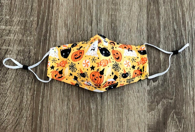 Catch these handmade triple-layer Halloween masks on Etsy before they sell out. Pick from the trick-or-treating themed mask or the pumpkins. Includes adjustable elastic loops, filter pocket, and is sized to fit toddlers and up.