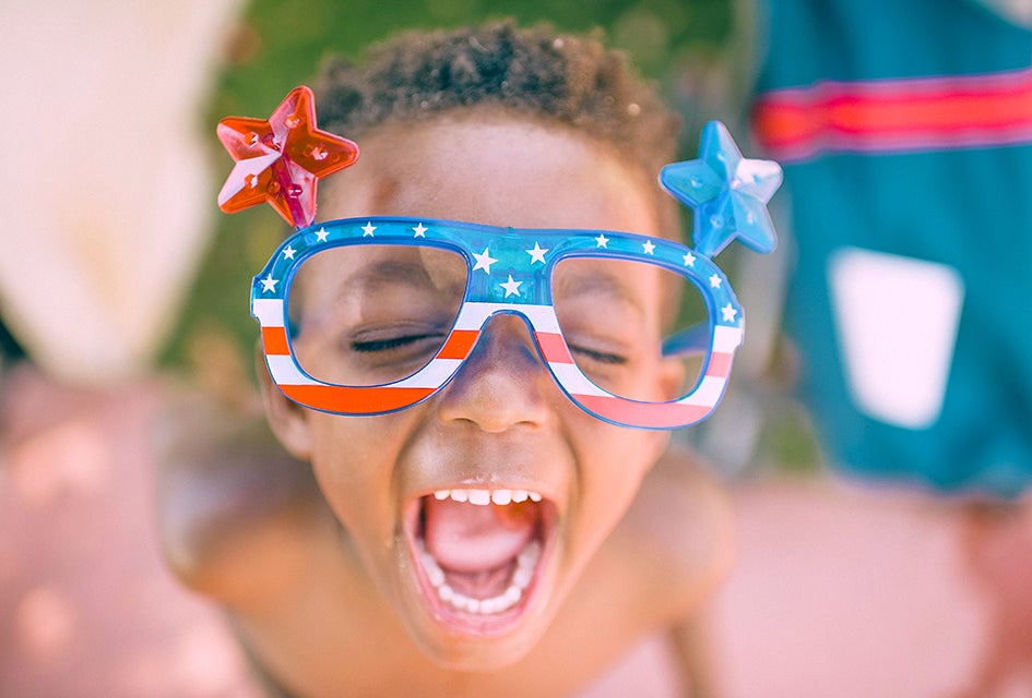 Put some picnic blankets on the floor of your living room and break out the picnic basket for an indoor campout. Toast some s'mores indoors or out, or pop some popcorn (mixing in some red, white, and blue sprinkles to make it extra festive). After it gets dark, no lights are allowed! Grab a flashlight and watch a patriotic movie like This is America, Charlie Brown or All Aboard America.