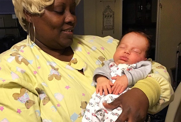 Baby night nurse Alicia Wilson cradles a newborn under her care. Photo courtesy of Wilson.