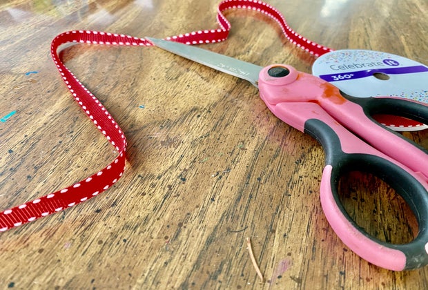 Cut about 18 to 20 inches of ribbon. Keep in mind that you will be wearing this around your neck, so a smooth ribbon will usually work best.