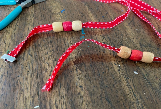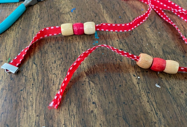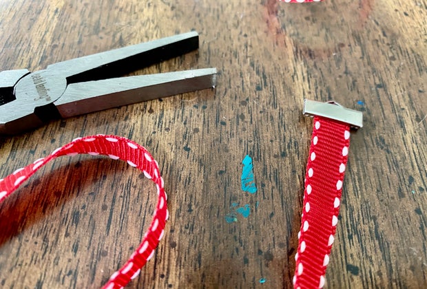 Attach the alligator clasps to the end of the ribbon crimps, and you're ready to go!