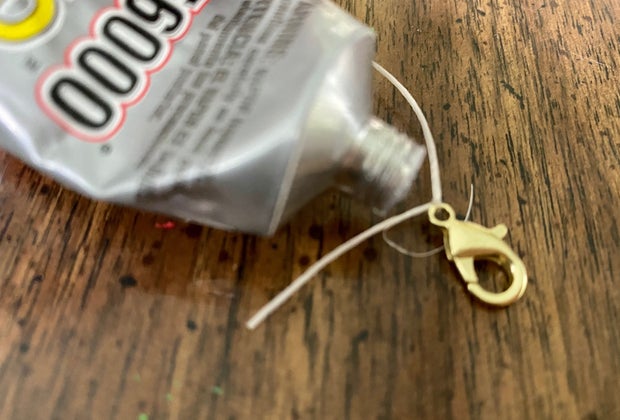 Cover the knots in bead glue. This will stop the knots from slipping out of the elastic cord and make the mask necklace more secure. Make sure you allow for the glue to completely dry before using it.
