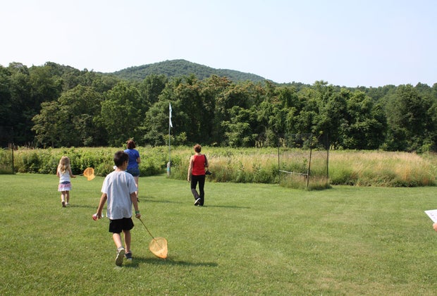 Located about an hour from central Westchester, Hudson Highlands Nature Museum makes for a great weekend day trip. The museum seeks to engage children's sense of wonder and bring out the budding scientist in each child. The museum consists of two locations—the Wildlife Education Center (WEC) and the Outdoor Discovery Center (ODC). My kids and I visited the latter. The ODC is home to the Visitors center and gift shop, hiking trails, the Grasshopper Grove playground and many of the nature programs. During our visit, we participated in an insect program, one of the museum's many educational offerings. After a brief display and discussion of some insects under glass—and a close-up look at a living caterpillar and chrysalis—the kids decorated their plastic bug jars with stickers, collected their nets and checklists, and headed out for a guided bug hunt. The center provides all the materials.