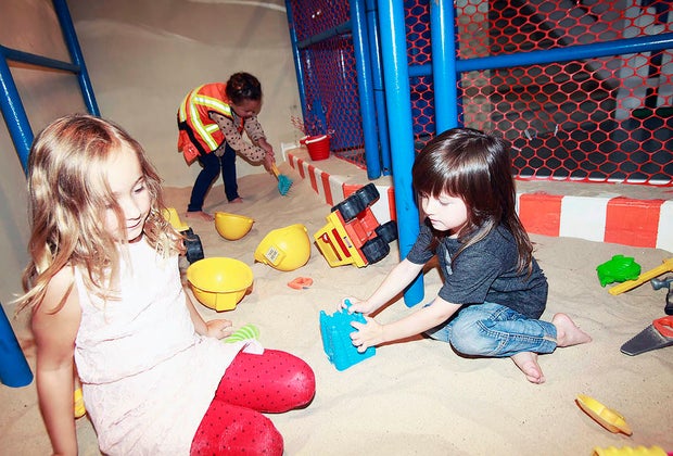 This epic play zone offers a giant ball pit, two-level train, trampolines, swings, a rock-climbing wall, and plenty more to keep kids occupied for hours. You can even get food here—light lunch fare such as pizza and popcorn chicken is available, as well as smoothies and a full ice cream bar.