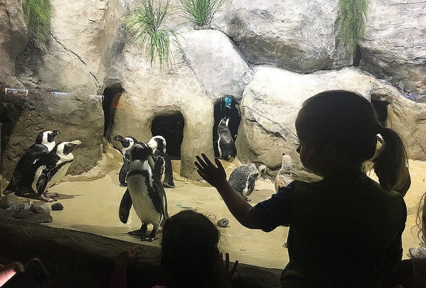 The African Penguin tank is another highlight. These adorable, endangered, birds are pretty entertaining as they swim, dive and waddle on shore. Kids can peer underwater to watch the penguins gliding through the seawater or peer in through a "porthole" to feel even closer to the penguin action.