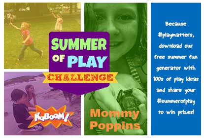 We hope you'll join us in our SUMMER OF PLAY CHALLENGE. If you do, share your play and you could win some great prizes. Every Friday through August 15, 2014, we'll randomly pick one person's #summerofplay entry to win a KaBOOM! Go Out and Play! Backpack filled with play essentials.