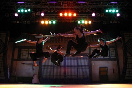 Considering the physical demands of performing in Jump, it's no surprise that it features a rotating cast. The moves being used seem to be a mishmash of martial arts styles, but most of the amazingly athletic actors were trained in Tae Kwon Do and Hap Ki Do.