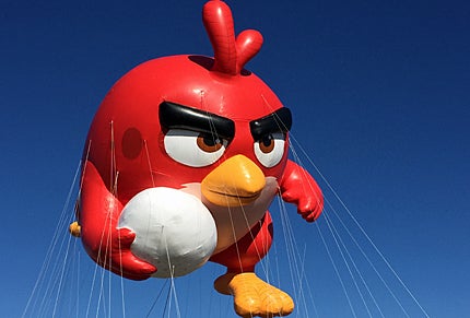 Red makes its debut ahead of the The Angry Birds Movie, which will be released in May 2016. Red looks like he's en route to a Thanksgiving football game carrying an egg under his wing. The stout bird is 44-feet long and 45-feet tall, while his eyebrows alone measure 7-feet wide!