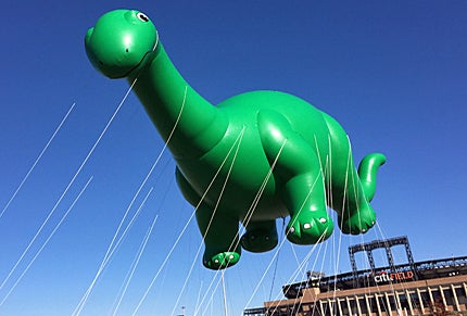 Sinclair Oil has previously sponsored a DINO balloon in the parade, but he was retired 40 years ago! He's back and bigger than ever—DINO is the only life-size balloon in the lineup. An apatosaurus, he measures 72-feet long, 24-feet wide and 36-feet tall.