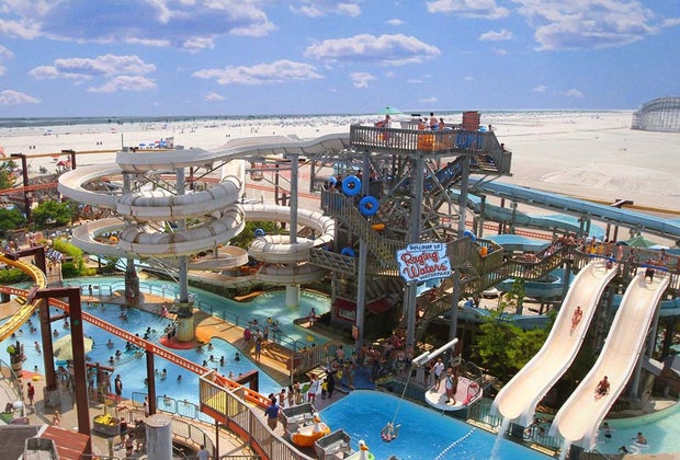 Raging Waters is right on the beach! Photo courtesy of the water park