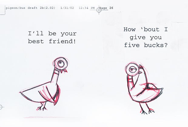 A preliminary sketch of Don't Let the Pigeon Drive Drive the Bus. Image courtesy of NYHS.