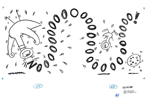 The exhibit takes over three galleries on the museum's second floor. You enter to a career retrospective focusing on his early projects such as student films, early television work for Sesame Street and Sheep in the Big City. You see old-school animation cells and his graphic novel Walking the Williamsburg Bridge to Work—his experiences of the September 11 terrorist attacks—created for DC Comics and now housed in the Library of Congress.