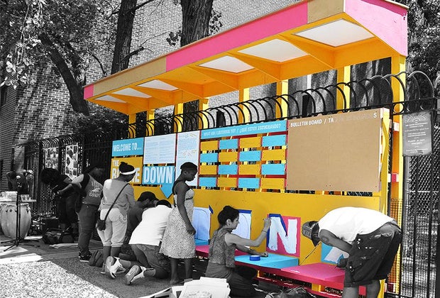 Chat Travieso's booth streams local music curated by the Bronx Music Heritage Center and includes seating, solar-powered lighting, artwork by local school kids and even a community calendar. It's a remodeled revival of last year's Boogie Down Booth that popped up underneath the elevated 2/5 train tracks.